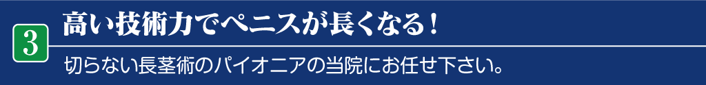 他院で伸ばせないと言われた方も、当院へご相談ください。長茎術のパイオニアの当院では、