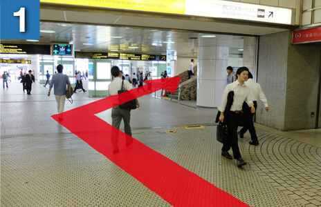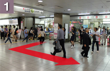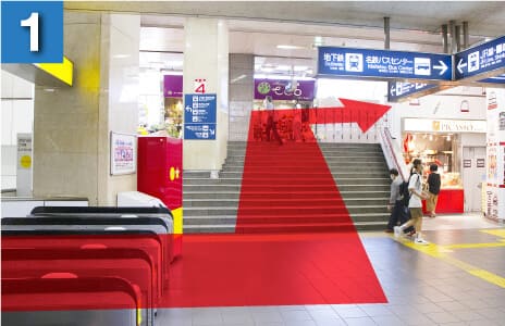 中央口出口専用の改札を出ましたら、左手の階段を上がりつきあたりを右折してください。