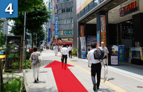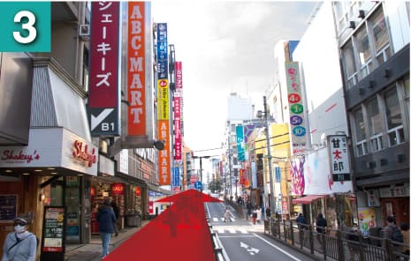 地上に出たら出口と逆方向(京王百貨店方面)へ進みます。