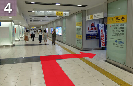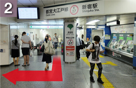 大江戸線にてお越しの方は改札を出て右に向かいます。