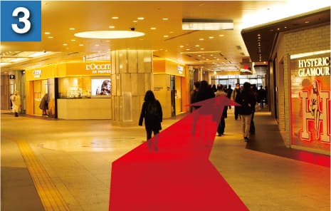 ロクシタンさんを左手側に直進し、ジョイナスの出口を目指します。