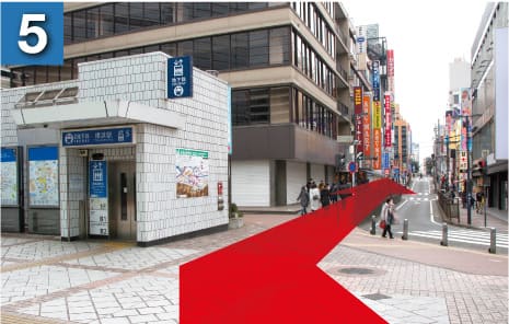 出口5番から地上に出ます。