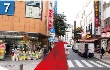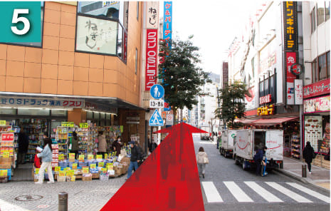 五叉路に出たら八百徳さんを左手側にパルナード通りをそのまま直進します。