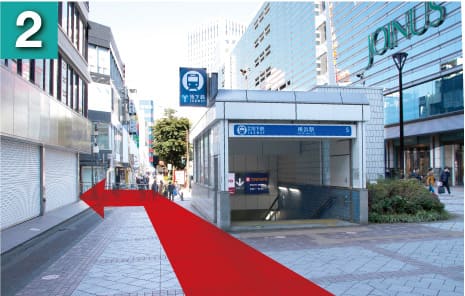 市営地下鉄横浜駅の出入り口を右手側に左折、パルナード通りを直進します。