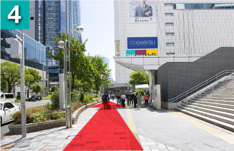 サマンサベガさんを右手に地上に出ます。地上に出ましたら、 右折して名駅通を直進します。