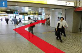 駅(ルミネ1)を右手に坂を下るようにして進んでいただき、横断歩道を渡ります。