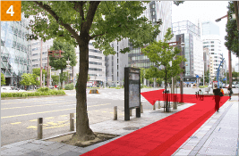 ディアモール円形広場に出ましたら梅田DTタワーを左手側にカジュアルストリート(北新地方面)を直進します。